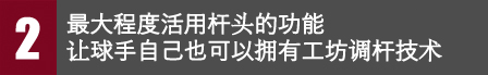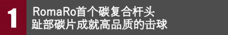 通过杆身插入角度的变化,有可变式转接环,用以灵活调节改变杆面角,loft 角和lie角。通过立体方块状的设计,减少击球弯曲的幅度,使得击球能量有效地传递、提高球初速。通过对独特的转接头(可调整转接环)调节, 达到对倒旋量的调整,这是RomaRo独有的设计。在底部根部上的配重,除了可以调整杆头重量外,还可以调整起飞角度,使得捕球更易,为了能够灵活发挥更大的杆头性能,搭载了可配合球手需求而进行调整的新功能。