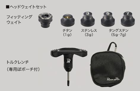 ヘッド重量、バランス調整はもちろん、微妙なつかまり感をカスタムできるフィッティングウェイト。標準ヘッドにタングステン5gを装着。ボディはソフトステンレス、ロフト角・ライ角の調整も可能。